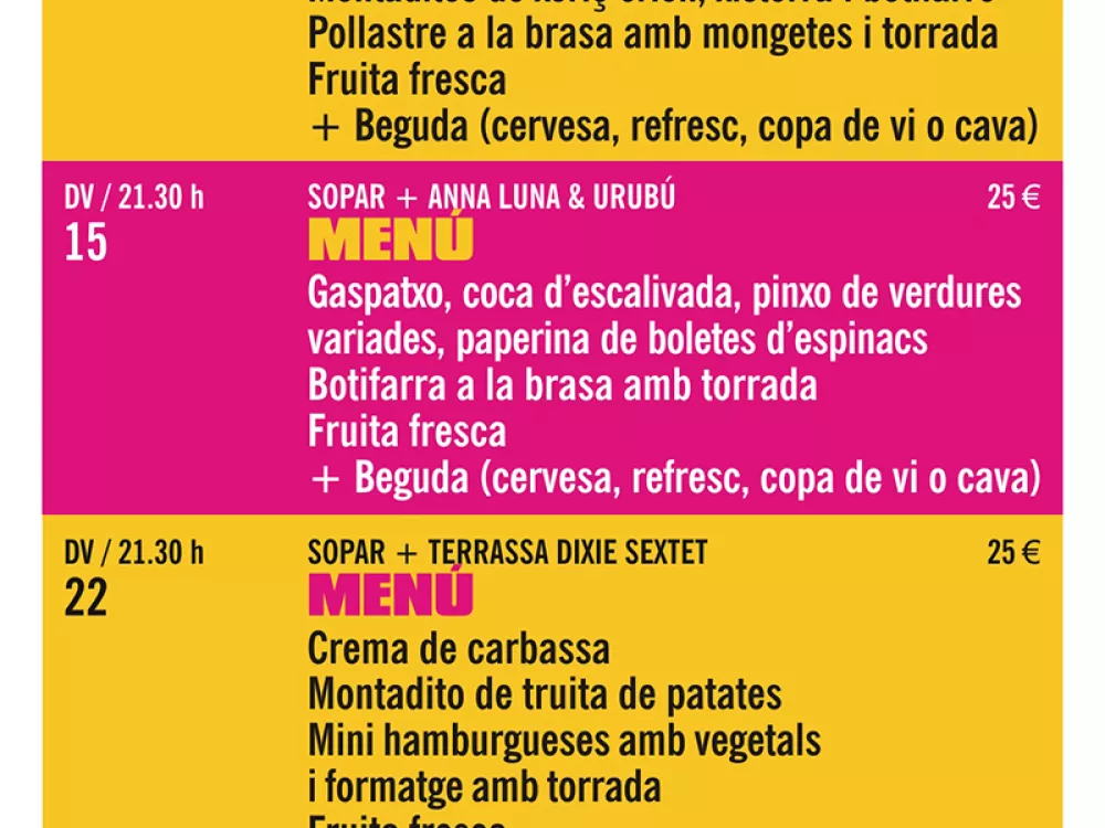 A les 21.30h Sopar + 23h Concert 23 € Web - 25 € Anticipada i Taquilla