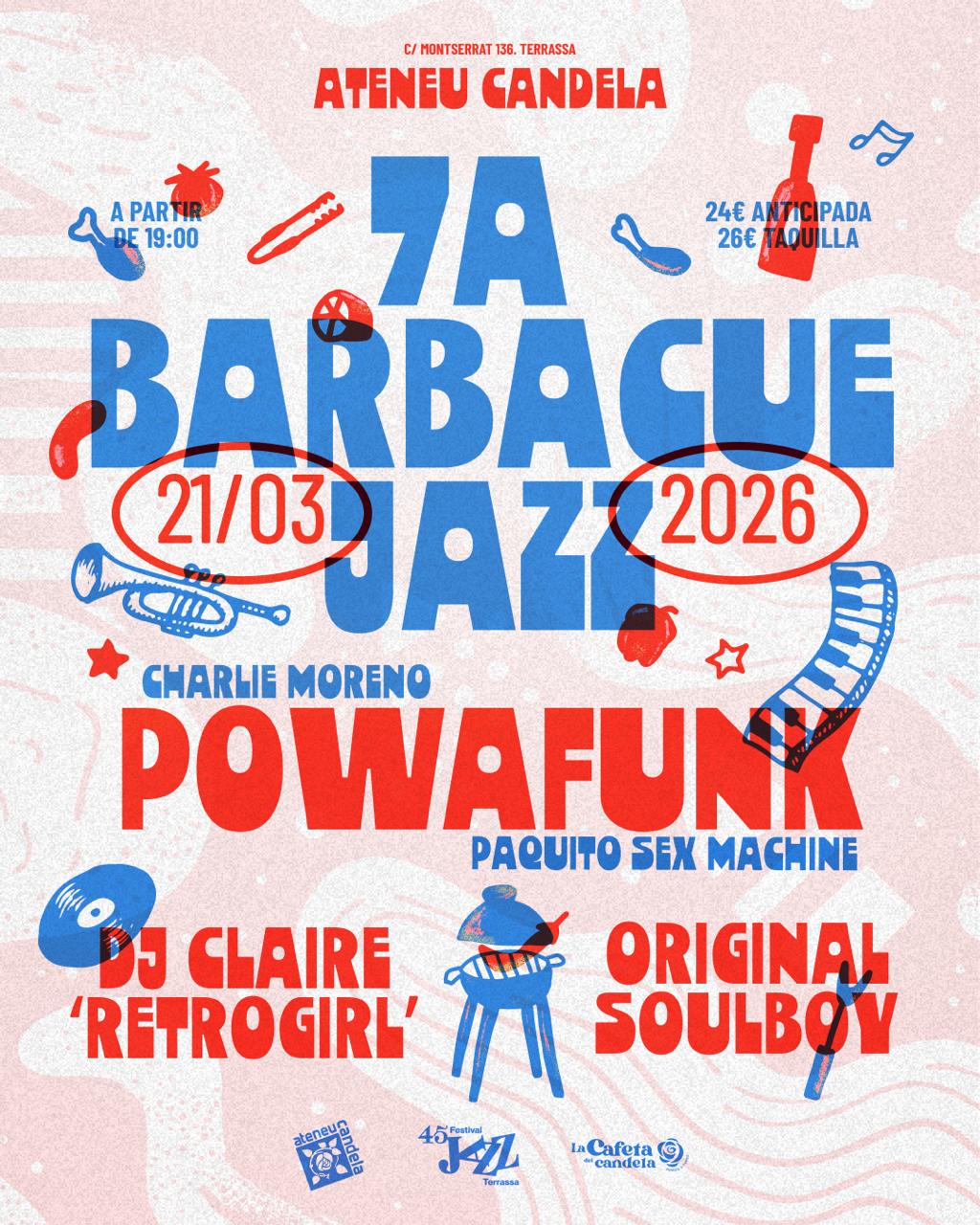 La Barbecue Jazz arriba a la setena edició com una de les cites més festives del Festival Jazz Terrassa. Una nit per gaudir de música en directe, sopar a les brases i pista de ball, en l’ambient inconfusible de l’Ateneu Candela.